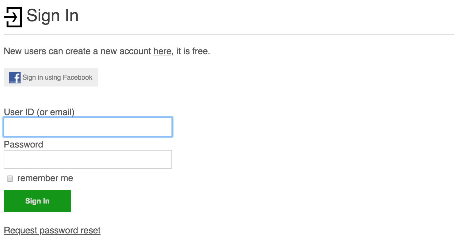 You can sign in using your user id, or your email address if you entered one when signing up. If you forgot your password you will be given a password reset link after one failed sign in attempt. You must have entered an email address when signing up to be able to reset your password.